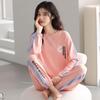 Damen Pyjama aus reiner Baumwolle - Frühling/Herbst Einfarbig, Rundhalsausschnitt, Langarm, Locker, Lässig, Bequemes Homewear-Set.