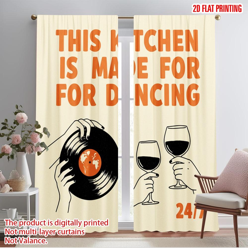 2 Stück 2D Flachdruck Vorhang Diese Küche Tanzen Vinyl Glas Polyester Ohne Strom Partydekorationen Perfekt für Raum