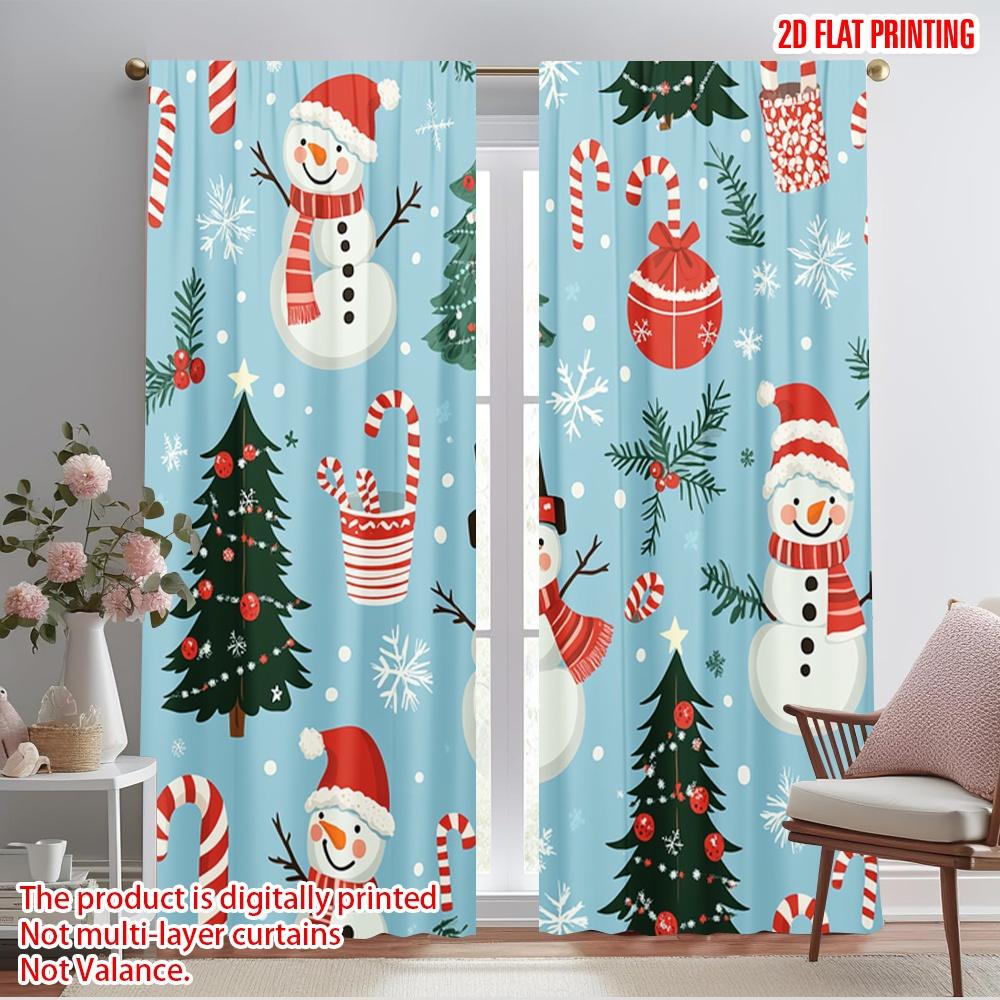 2 Stück, 2D-Flachdruck Minimalistische Vorhänge Niedlicher Schneemann Weihnachten Polyesterstoff (ohne Stange) Festliche Verwendung im Wohnzimmer