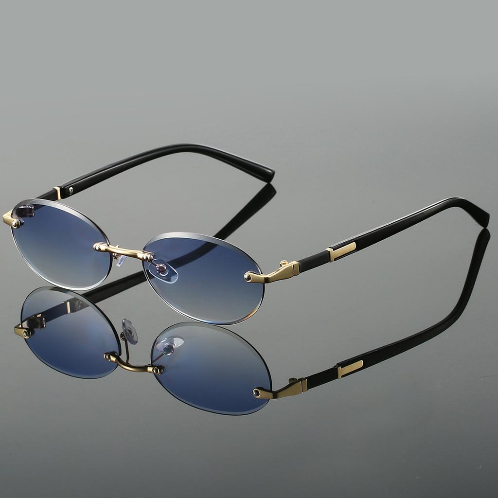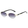 Trendy Retro Metal Gradient Shades Women Stylish Oval Vacation Beach Sunglasses Men's Chic Driving Anti UV Sun Glasses