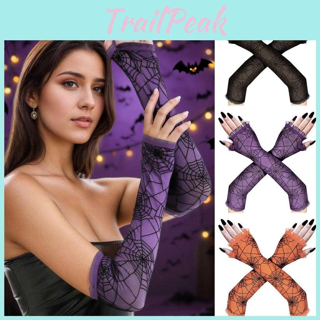 Halloween Costumes Long Gloves Spider Web Design Cosplay Decorations Party