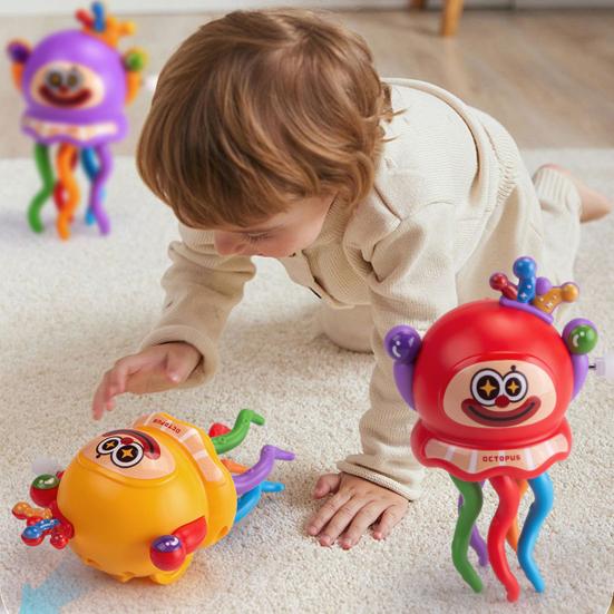 Dieses Spielzeug funktioniert ohne Batterien und fördert ein umweltfreundliches und kostengünstiges Spielerlebnis.. Das lebhafte Oktopus-Design mit lebhaften Ausdrücken fesselt sofort die Aufmerksamkeit von Kindern und fördert ein reges Interesse am Spielen..
