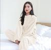 2025 Herbst/Winter Damen Verdicktes Korallenfleece Flanell Pyjama Set mit langem Cardigan, Übergröße, Warme Homewear.