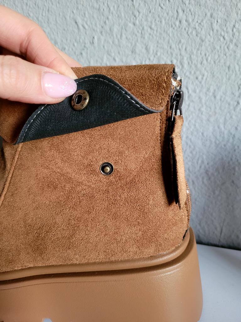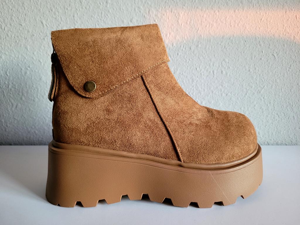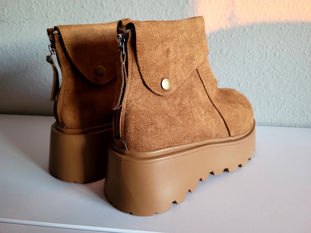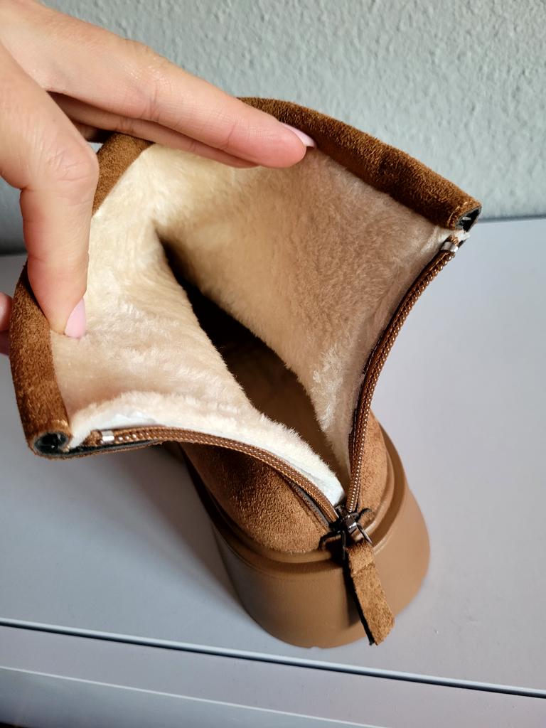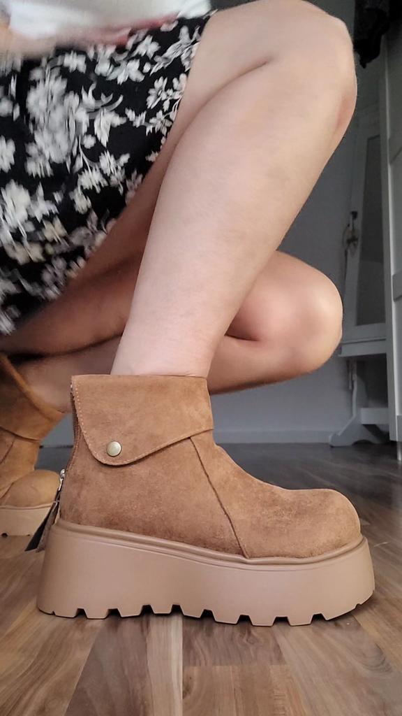 * warme Winter - Plateau- Boots von TUINANLE * 🌟🌟🌟🌟 💥𝗟𝗶𝗲𝗳𝗲𝗿𝘇𝗲𝗶𝘁 18 Tage bis nach Deutschland 💥𝗟𝗶𝗲𝗳𝗲𝗿𝘂𝗺𝗳𝗮𝗻𝗴 Im Lieferumfang enthalten ist 1 Paar Schuhe in entsprechender Farbe und Größe. Verfügbar sind die Schuhe in 2 verschiedenen Ausführung (in khaki oder braun ) von Größe 35 bis 41. Ich habe die Schuhe in Größe 41 in khaki bestellt. Tatsächlich fallen die Schuhe erfahrungsgemäß etwas kleiner aus, denn Schuhgröße 41 entspricht eher einer 39. Achtet bei der Auswahl eurer richtigen Schuhgröße unbedingt auf die Zentimeterangabe des Herstellers. Die Schuhe wurden gut verpackt in Luftpolsterfolie geliefert. 💥𝗤𝘂𝗮𝗹𝗶𝘁ä𝘁 Die Nähte sehen sehr gut verarbeitet aus, auch die Sohle ist gut verklebt und bietet ein gutes Profil mit tollem Plateau für mehr Rutschfestigkeit im Herbst und Winter. Auch den Härtetest beim Biegen, Ziehen und Quetschen haben die Schuhe gut bestanden. Die Oberfläche fühlt sich wie Rauleder an, ob es aber echt ist, kann ich nicht beurteilen. Von innen sind die Schuhe komplett kuschelig warm (nicht nur dekorativ an der Fußfessel, sondern im kompletten Schuh) . Dadurch bleiben die Füße auch im Winter schön warm. Die Schuhe werden hinten an der Ferse mit einem Reißverschluss geschlossen. Bei mir klemmte jedoch ein Reißverschluss, weil das Fell nicht ordentlich verarbeitet bzw vernäht war. Das Fell hat sich leider in dem Reißverschluss verfangen, so dass der Reißverschluss dadurch kaputt gegangen ist 😟😪😭 Aber tatsächlich konnte ich auch den intakten Reißverschluss des anderen Schuhs nicht schließen, weil Die Öffnung für die Knöchel viel zu schmal war. Eigentlich finde ich die Qualität der Schuhe sehr gut, wenn sie nicht an der Fußfessel zu schmal gewesen wären und der Reißverschluss kaputt gegangen wäre. Die Schuhe sind wie erwartet recht schwer und klobig. Das Design hat mich jedoch total überzeugt, die Farben und das Design sehen genausi cool aus wie auf den Herstellerbildern 😎 Zur Materialzusammensetzung : Unbekannt (vermutlich PU) 💥𝗙𝗮𝘇𝗶𝘁 Schöne Winterboots , die leider für mich am Knöchel viel zu schmal waren. Man sollte sie unbedingt ein bis zwei Nummern größer bestellen , damit sie passen. Bei meiner Lieferung war leider das Fell nicht ordentlich verarbeitet, so dass es sich beim Schließen und Öffnen immer wieder im Reißverschluss verfangen hat. Dadurch ist der Reißverschluss leider kaputt gegangen. Auch ist die Öffnung für meine Knöchel viel zu schmal. Ich hätte den Reißverschluss auch beim intakten Schuh nicht schließen können (siehe video). Daher ein Stern Abzug 🌟🌟🌟🌟