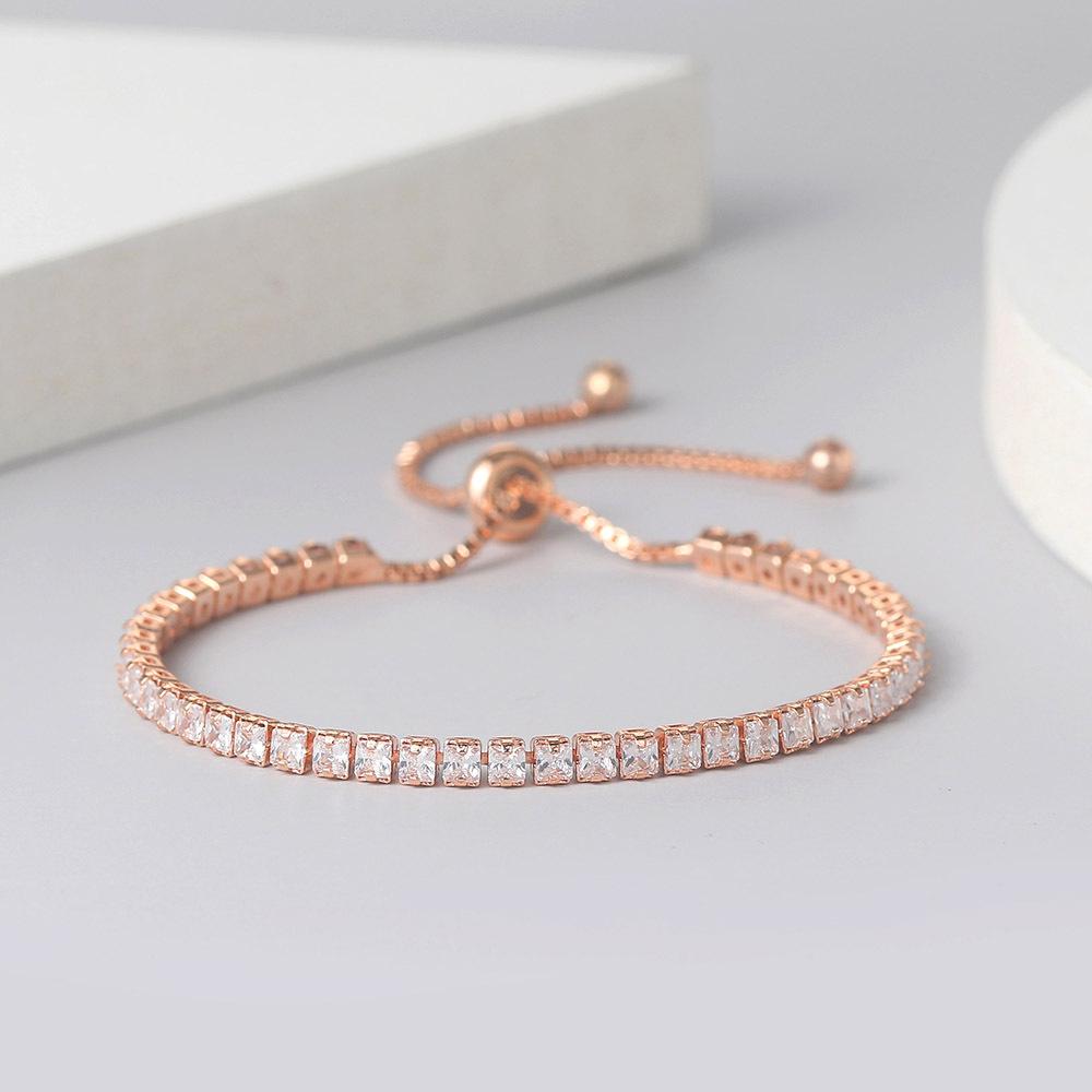 Misty Moon, Single Row Full Diamond 2.5Mm Square Zircon Bracelet, Adjustable Crystal Jewelry.