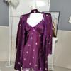 Schmetterlingsmuster Tiefer V-Ausschnitt Gepolsterter Schlafanzug-Set: Sexy und schlankmachendes Nachthemd aus Eis seide mit Feen-Camisole.