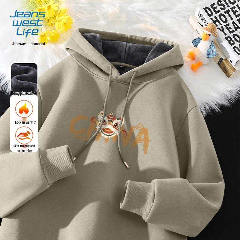 JEANSWEST LIFE Herren Winter Chinesischer Trend Mit Kapuze und Fleece gefüttertes Sweatshirt