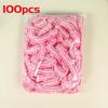 100 teile/satz Einweg-Duschhauben Kunststoff Wasserdichte Kopfbedeckung Rosa Spa Salon Hotel Haarfärbemittel Frauen Elastische haar Kappe Bad