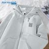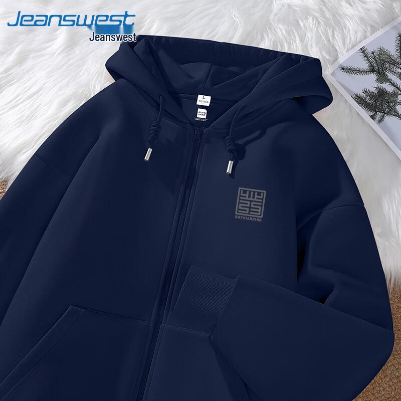 Jeanswest Herren Schwergewicht Baumwolle Kapuzen-Cardigan Sweatshirt mit Grauem Etikett