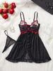 Sheer Rose Embroidery Backless Lingerie Set with Thong & Suspenders