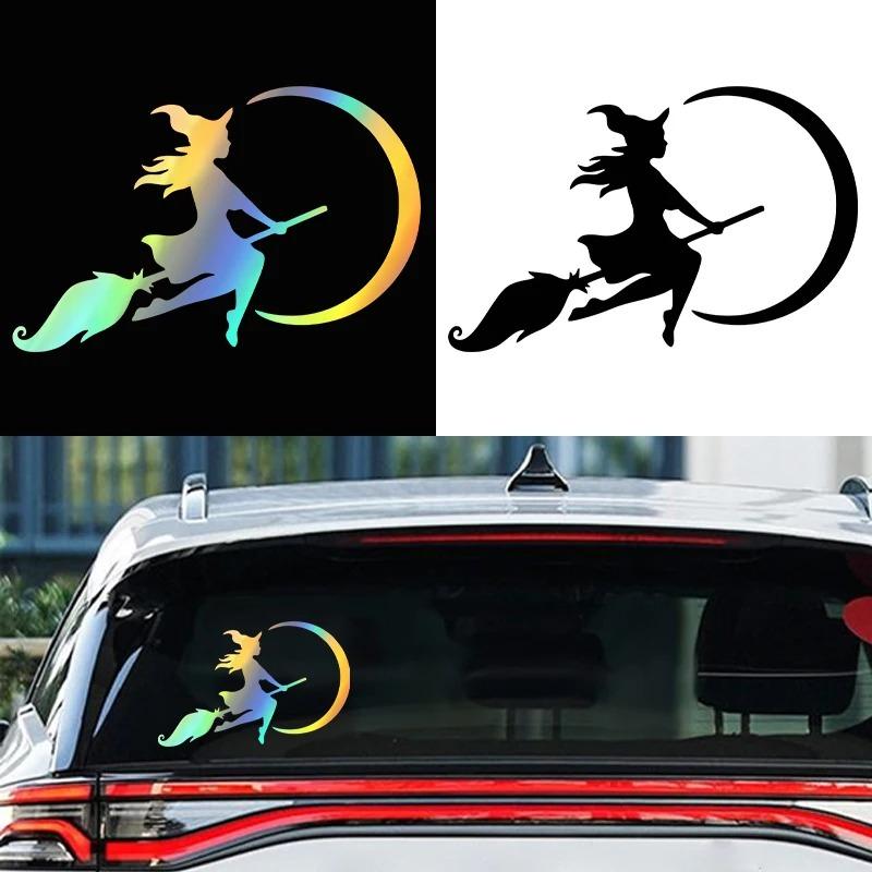 LYKX Die Hexe fliegt zum Mond Lustiger Autoaufkleber Vinylaufkleber Selbstklebeaufkleber für den ganzen Körper