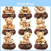 This brown bear-themed honeycomb decoration features nine paper-crafted bear nests, designed to enhance baby shower and infant celebration setups. durable decorations are ideal as table centerpieces or photo props. Crafted from sturdy paper, they resist tearing with gentle handling. Suitable for baby shower, birthday, and childrens events, these honeycomb bears add a charming touch to venue decor. Wipe clean with a damp cloth to maintain their appearance.