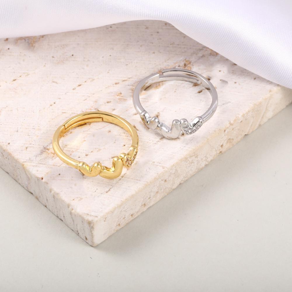 18 Karat Vergoldeter Herzförmiger Ring für Damen mit Mikrofassierten Zirkonia und Verstellbarem Dünnen Band