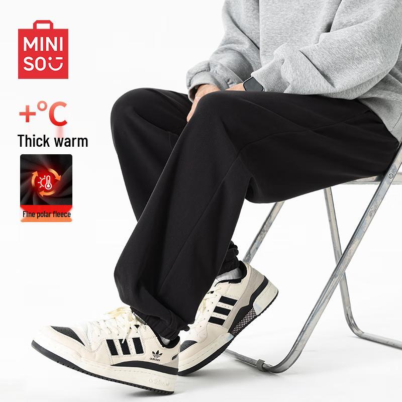MINISO Men's Autumn/Winter Fleece Lined Casual Jogger Pants