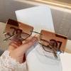 Damen Randlose Große Quadratische Sonnenbrille mit Metallbeschrifteten Bügeln - Stilvolles und Beliebtes Spiegeldesign