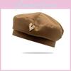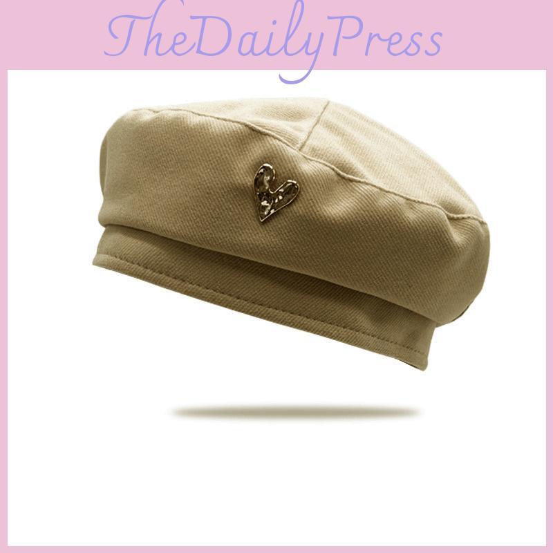 Love Metal Embellished Beret Solid Color Winter Octagonal Hat Outdoor Activities