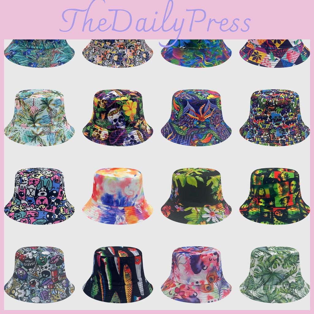 Tie Dye Fisherman Hat Uv Protection Assorted Colors Print Butterfly Cat Leaf Cap