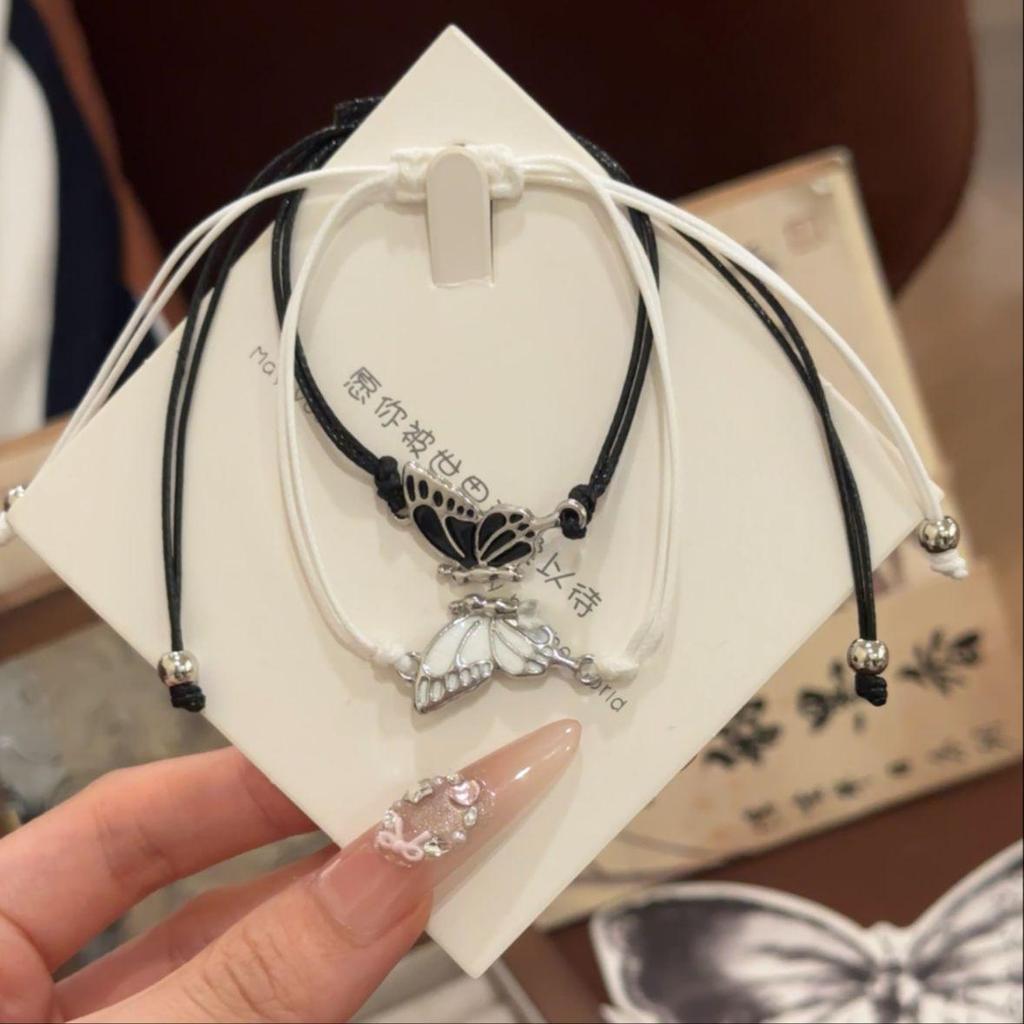 Handmade Woven Butterfly Friendship Bracelet - Cartoon Style, Waxed Cord, Trendy and Stylish for Couples and Friends.