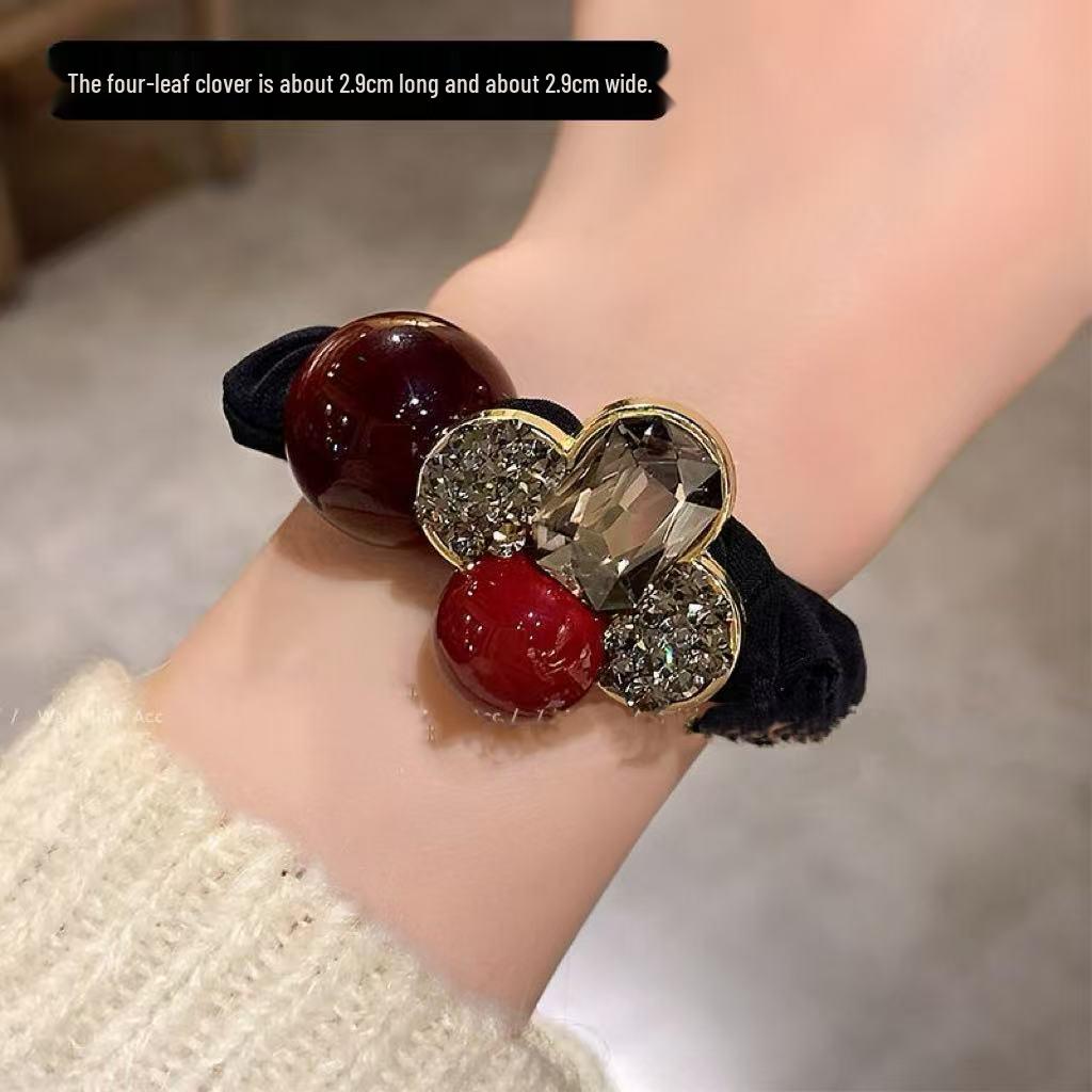 Haargummi mit Strass-Vierblattblume – Elegantes und strapazierfähiges Haarband für Damen
