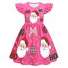 Kinder Mädchen Cartoon Weihnachtsmann Weihnachtsbaum Elch Druck Rüschenärmel Neujahrskleid