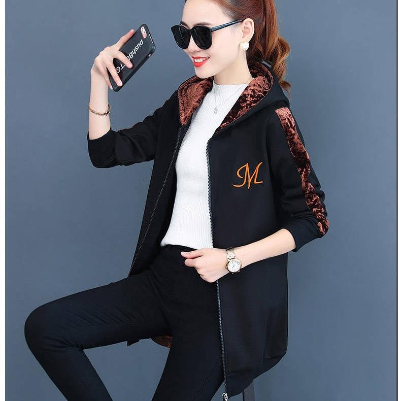 Herbst und Winter Neu Samtgefütterter Kapuzen-Langpullover Mantel Studentinnen Koreanische Version Lockerer Cardigan Bluse Damenbekleidung.