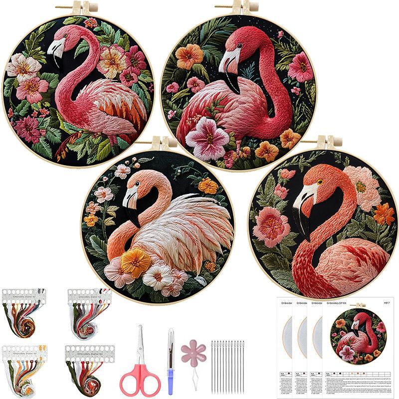 1 Stk. Flamingo- und Blumenmuster DIY Stickset für Anfänger