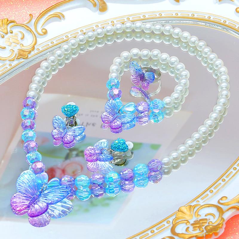 Prinzessinnen Schmuckset für Mädchen: Süßes Cartoon-Schmetterlings-Halskette, Choker, Ohrringe & Ring