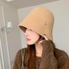 Women's Korean Style Warm Fluffy Letter Bucket Hat for Autumn and Winter Travel