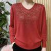 Herbst Damen V-Ausschnitt Übergröße Pullover Strass Langarm Locker Gestricktes Oberteil Pullover Strickware
