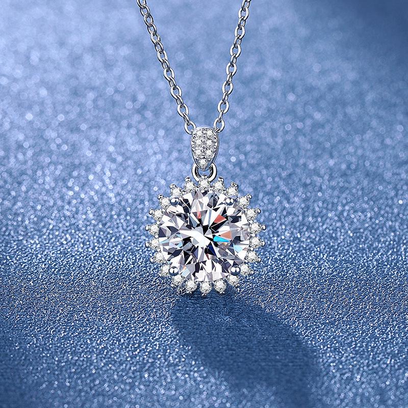 Simulierter Moissanit Sonnenblumen-Anhänger Halskette mit 5-Karat Diamant, Damen Ring platiniert PT950