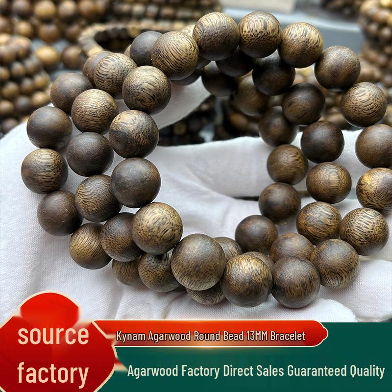 Yingge Green Qinan Agarwood 13mm Round Bead Buddhist Rosary Bracelet