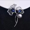 Luxuriöse blaue Perlen-Brosche mit Ahornblatt-Motiv und Diamanten-Akzenten