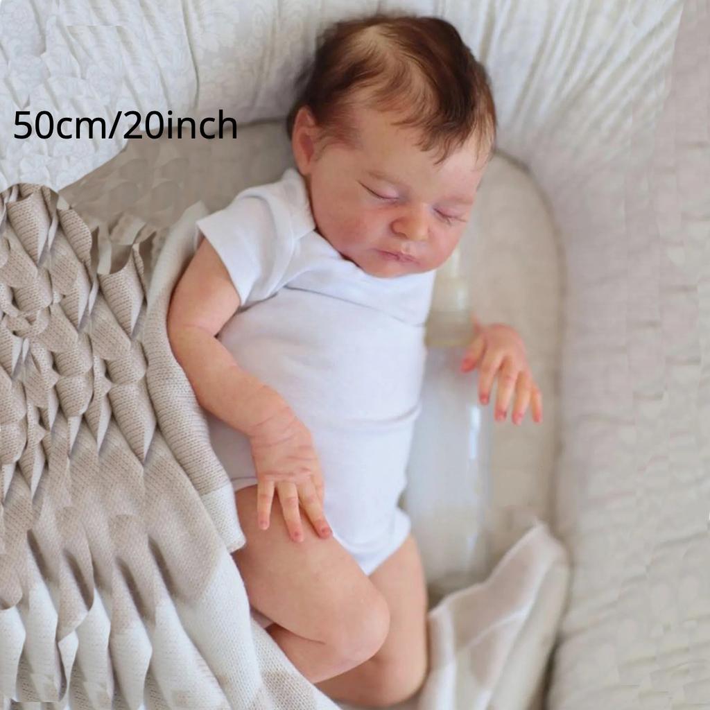 BZDOLL 20 Zoll 50 cm Weichvinyl Schläfriges Reborn Baby Mädchen Künstlerpuppe 3D-bemalte Haut mit sichtbaren Adern Schlafendes Neugeborenes Bebe Lebensecht Kinder Weihnachtsgeschenk