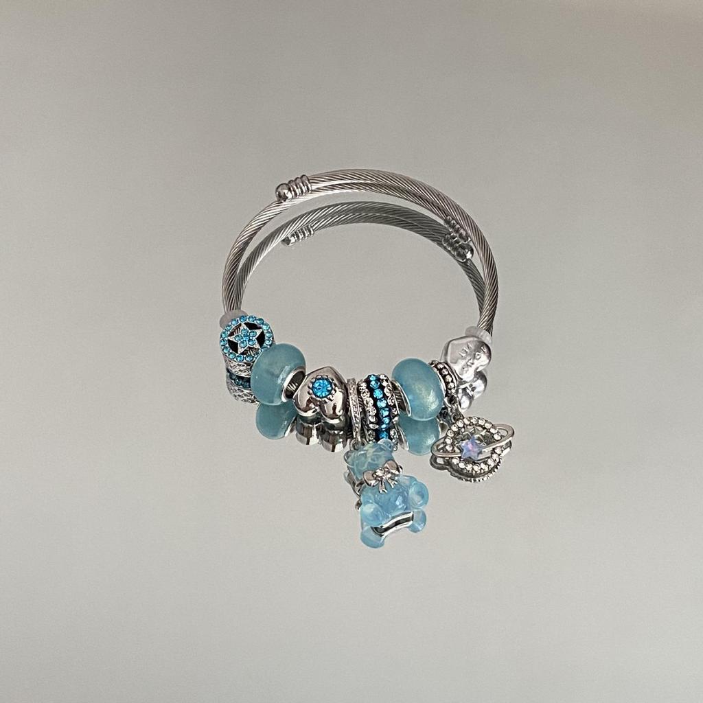 Pans Blaues Kristall Teddybär Charm Armband: Ein leichter Luxus-Design für Frauen