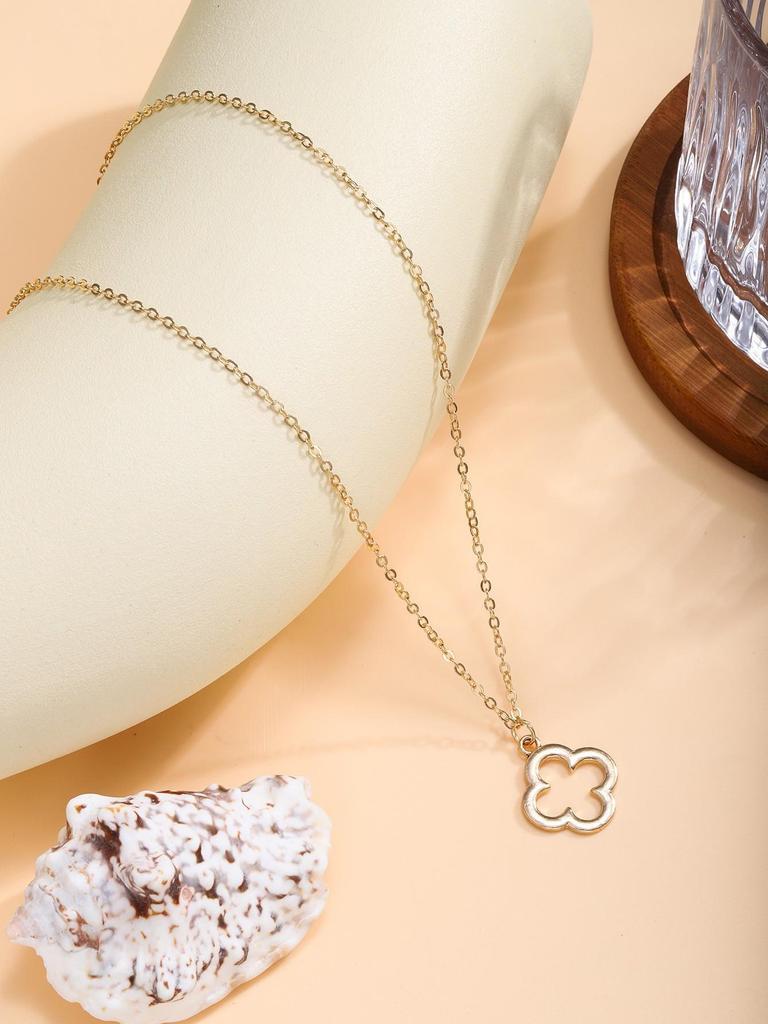 Elegante vierblättrige Kleeblatt-Anhänger Halskette - Vielseitige Metall-Schlüsselbein-Kette Schmuck für Damen