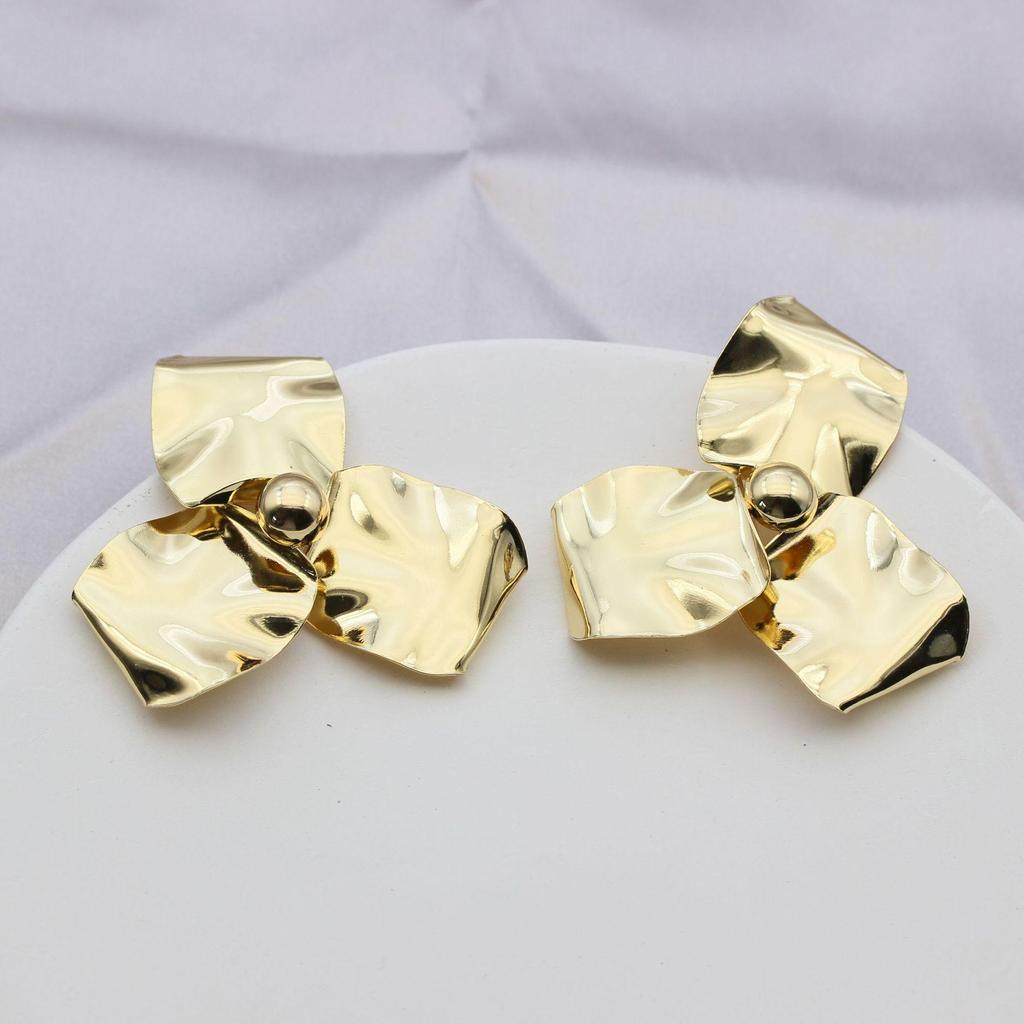 Blütenblatt-Textur Blumen S925 Silbernadel Hängeohrringe, Echtgoldplattiert, Übertriebenes Design, Grenzüberschreitender Luxus.