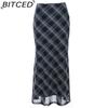 BITCED Summer Women's Solid-Color Slim-Fit Pencil Skirt Street Style High-Waisted Plaid Skirt