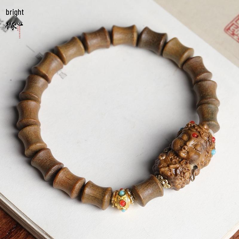 Green Sandalwood Bamboo Bead Bracelet DIY Avalokiteshvara 0.8x1.0 Men's & Women's Single-Loop Buddhist Beads