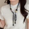Meillard Damen Leopardenmuster Seidenschal Halskette mit Stoffblume und einzigartigem Kordelzug-Design
