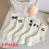 5 Paar Damen Baumwolle Mid-Calf Socken Cartoon Niedlich Preppy Stil Schweißabsorbierend Sommersocken für Damen