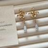 Koreanische Metall-Blumen-Perlen-Quasten-Hängeohrringe - Damen Retro High-End Vielseitiger Stil