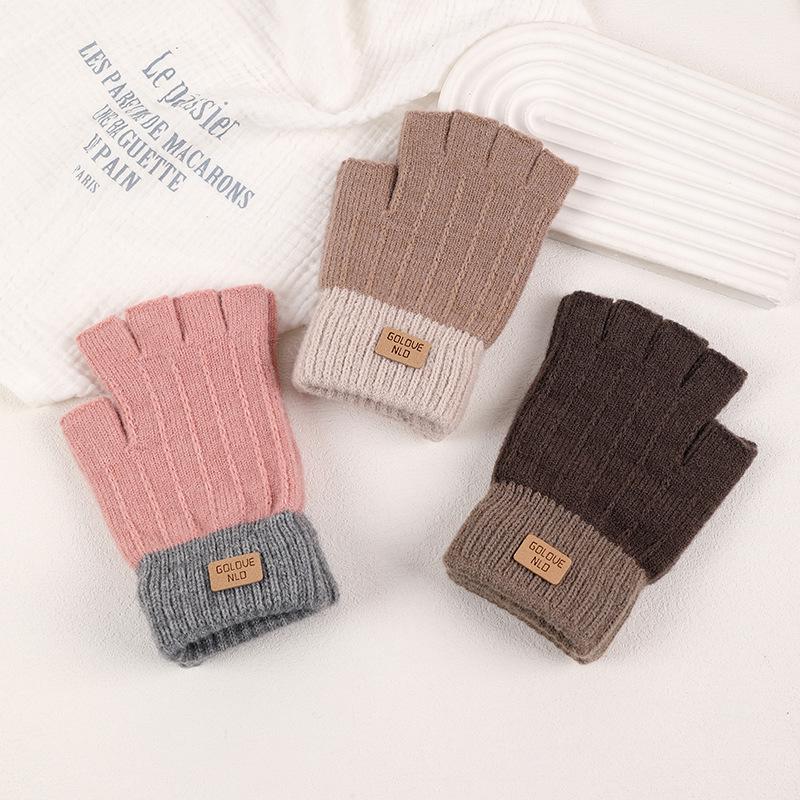 Damen Strickhandschuhe im koreanischen Stil mit Touchscreen-Funktion und halben Fingern - Warm, rutschfest, kältefest für Herbst & Winter