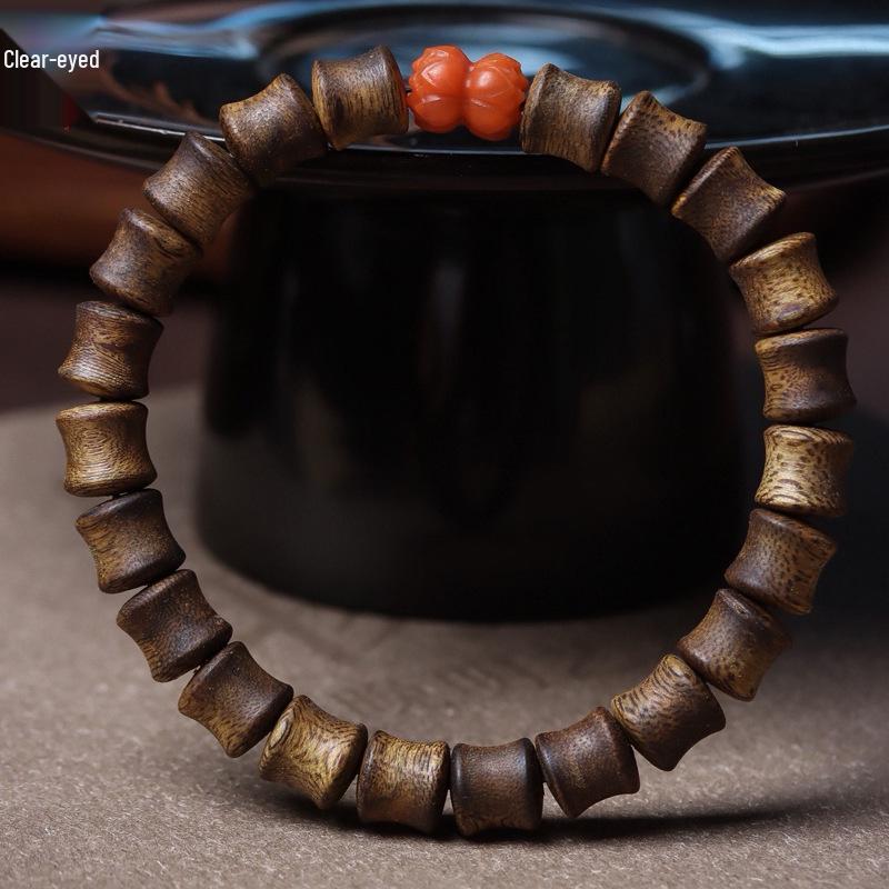 Hainan Green Qinan Agarwood Bamboo Joint & Lotus Bead Bracelet, 0.7 DIY, Unisex Prayer Beads