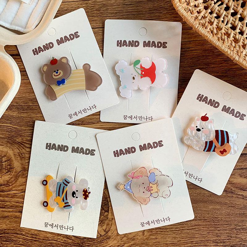 Mädchenhaftes Cartoon Teddybär Acryl Haarspangen Set - Feenhafte Haarnadeln und Pony-Accessoires.