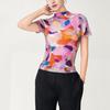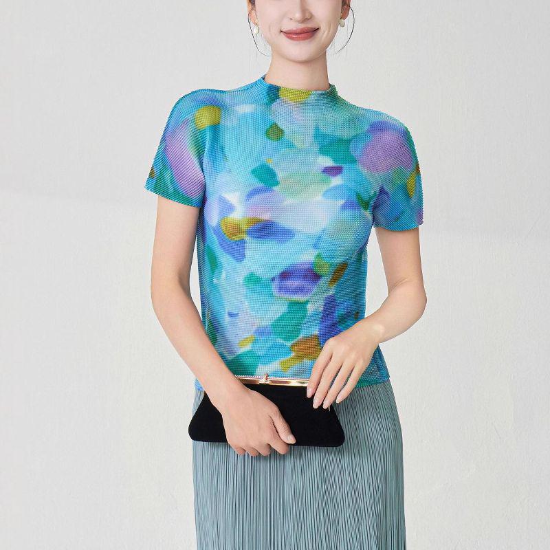 Miyake Stil Plissee Druck Slim Fit Kurzarm Damen Sommer T-Shirt