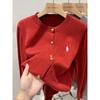 Europäische Retro Kaschmir Stickjacke: Damen Oversized, Rundhals, Vielseitiger Strickmantel
