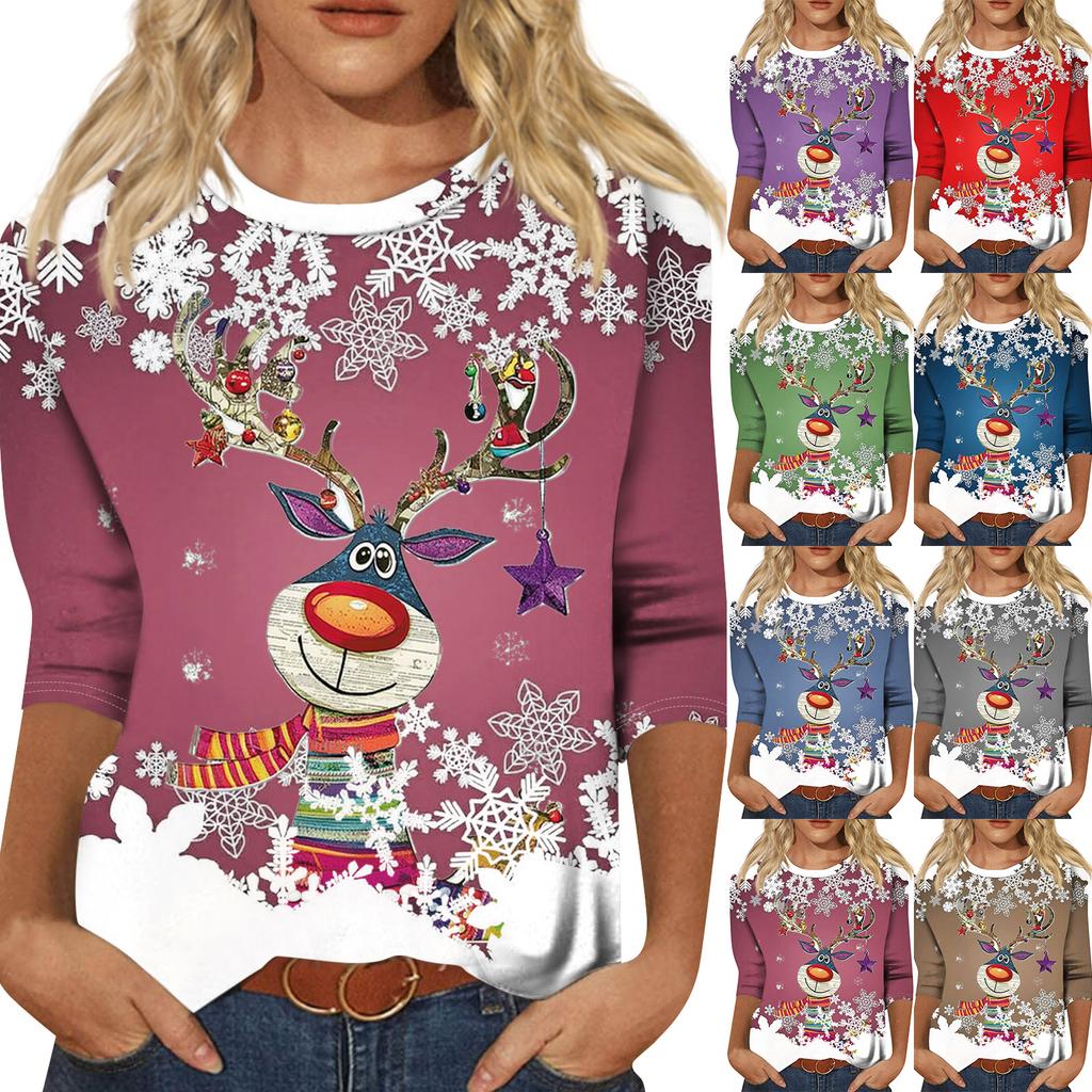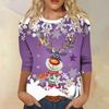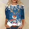 Damenmode Lässiges Rundhals-T-Shirt mit 3/4-Ärmeln und lockerem Aufdruck