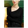 Neues Basisshirt mit schrägem Kragen für Damen in Herbstkleidung für Damen Slim Fit Plissiert Modisch Lange Ärmel