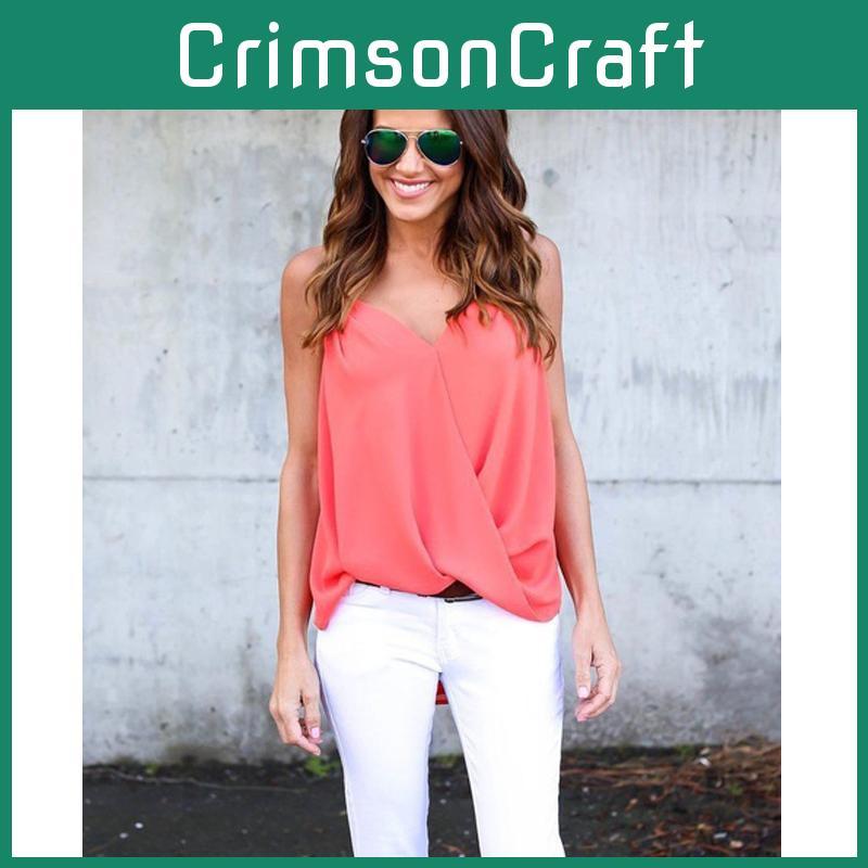 Summer Plus Size Women Blouse V Neck Sleeveless Sexy Tops Casual Shirt Blouse