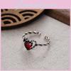 Wing Vintage Stunning Heart Red Zircon Ring For Women Jewelry High Fashion Adjustable